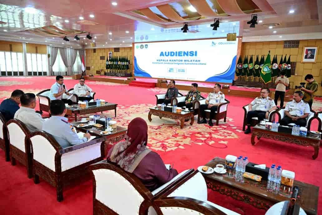 Hal tersebut disampaikan Bobby saat menerima audiensi Kepala Kantor Wilayah Direktorat Jenderal Imigrasi Sumut, Parlindungan, beserta jajaran di Aula Tengku Rizal Nurdin, Jalan Sudirman No. 41, Medan, Kamis (23/4/2026). Pertemuan ini membahas penguatan kolaborasi dalam penanganan pengungsi luar negeri serta peningkatan fasilitas layanan imigrasi di wilayah Sumut.