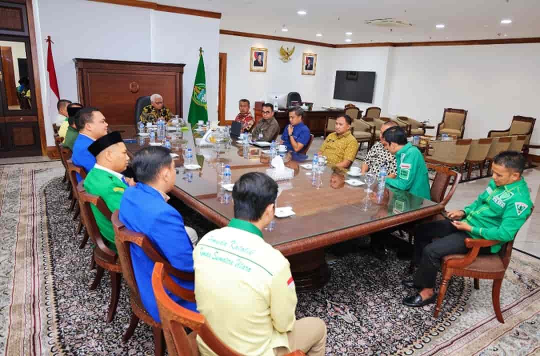 Kunjungan kelima organisasi kepemudaan dari Pemuda Muhammadyah, GP. Ansor, GAMKI, Gerakan Pemuda Alwasliyah dan Pemuda Katolik disambut baik Wakil Gubernur Sumatera Utara H. Surya B. Sc di ruang kerjanya lantai 9 gedung Pemprovsu.