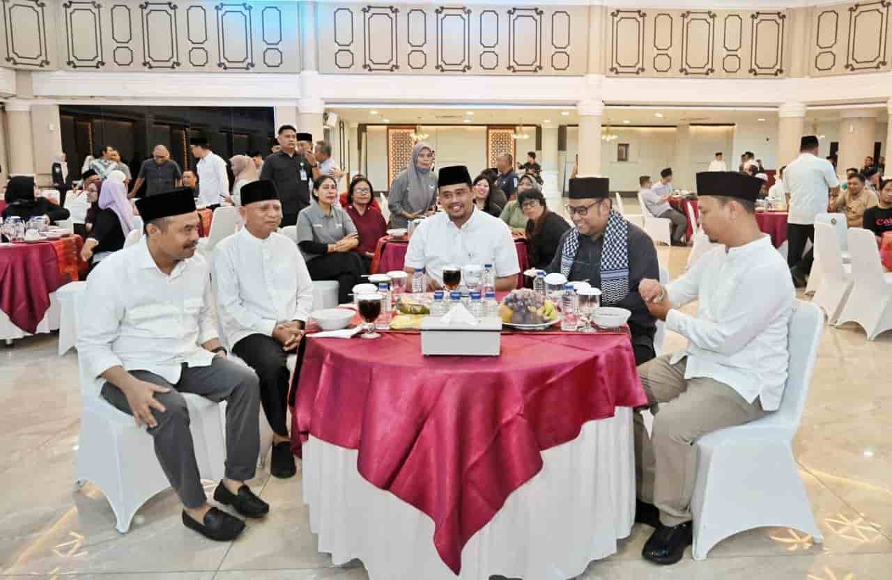 METROKREASI.COM, MEDAN – Gubernur Sumatera Utara (Sumut) Muhammad Bobby Afif Nasution menggelar buka puasa bersama insan pers di Aula Raja Inal Siregar, Kantor Gubernur Sumut, Selasa (17/3/2026). Dalam kesempatan tersebut, Bobby menekankan pentingnya kebebasan pers yang disertai tanggung jawab dan berlandaskan fakta.