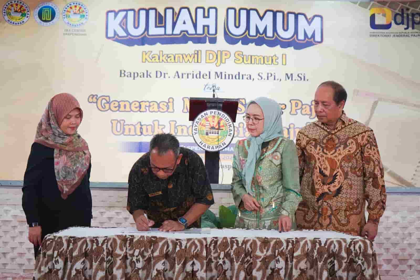 Menurutnya, kehadiran Tax Center adalah ruang kolaboratif di lingkungan Yayasan Pendidikan Harapan untuk belajar, meneliti, sekaligus mengedukasi masyarakat mengenai pentingnya pajak. Kegiatan peresmian turut dihadiri para pimpinan satuan pendidikan dibawah Yaspendhar serta mahasiswa Universitas Harapan Medan. Antusiasme peserta terlihat dari banyaknya pertanyaan yang diajukan kepada Kepala Kanwil dalam sesi diskusi, menunjukkan tingginya minat mahasiswa terhadap isu perpajakan dan pengelolaan keuangan negara.