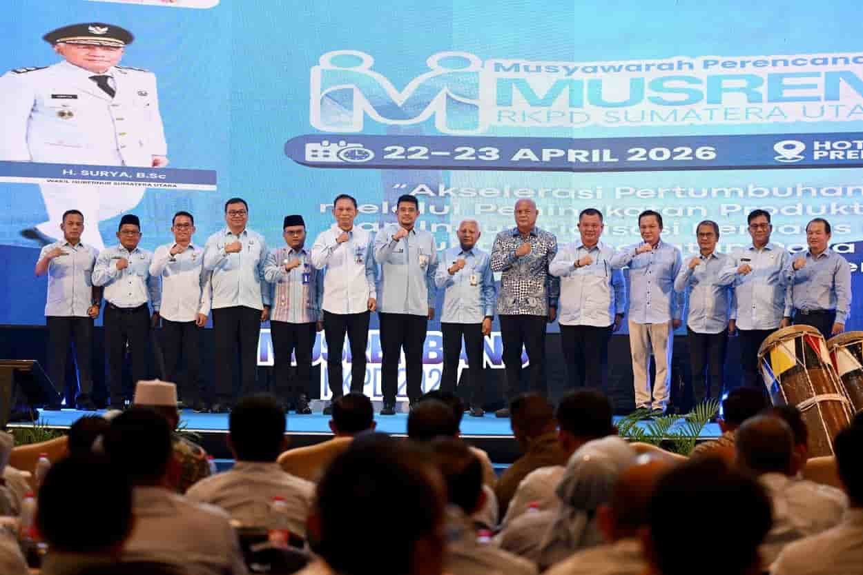 METROKREASI.COM, MEDAN – Dalam rangkaian Musyawarah Perencanaan Pembangunan Provinsi (Musrenbangprov) RKPD 2027 Sumatera Utara (Sumut) di Hotel Santika Medan, Rabu (23/4/2026), Gubernur Sumut Muhammad Bobby Afif Nasution menandatangani nota kesepahaman (Memorandum of Understanding/MoU) bersama pemerintah kabupaten/kota terkait langkah pengendalian inflasi.