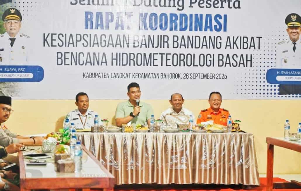 Gubernur juga menggelar rapat koordinasi kesiapsiagaan banjir bandang akibat bencana hidrometeorologi basah secara virtual bersama Kepala BMKG RI Dwikorita Karnawati di Kantor Camat Desa Timbang Jaya Kecamatan Bahorok, Kabupaten Langkat, Jumat (26/9/2025) lalu.