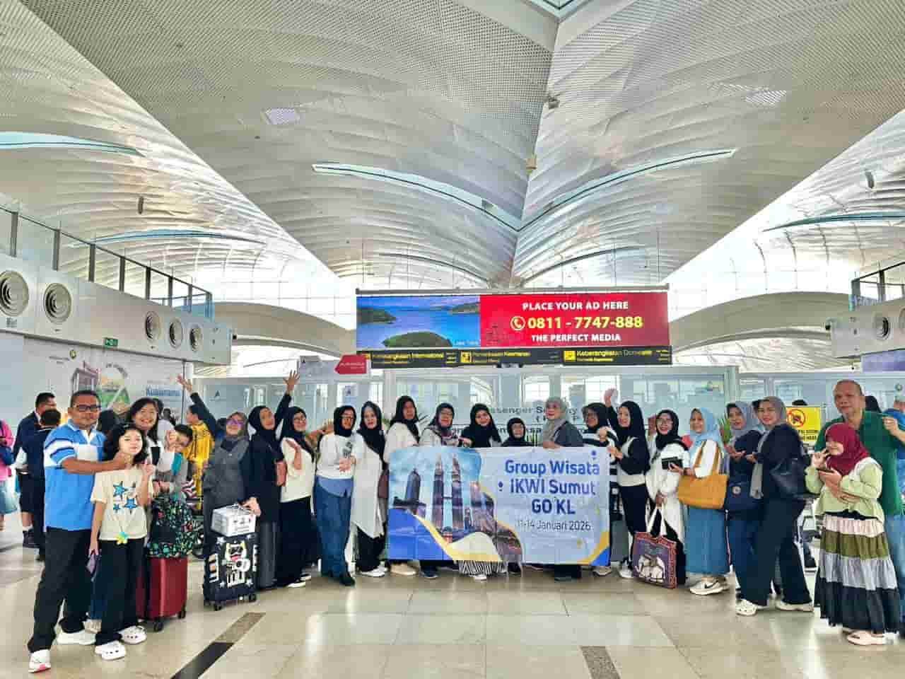 Medan, Metrokreasi.com – IKWI (Ikatan Keluarga Wartawan Indonesia) PWI Sumut melakukan kegiatan wisata ke negara serumpun ke Kuala Lumpur Malaysia, Minggu (11/1/2026) dilepas Pengurus PWI (Persatuan Wartawan Indonesia) Sumut dari bandara internasional Kualanamu Medan-Deliserdang.