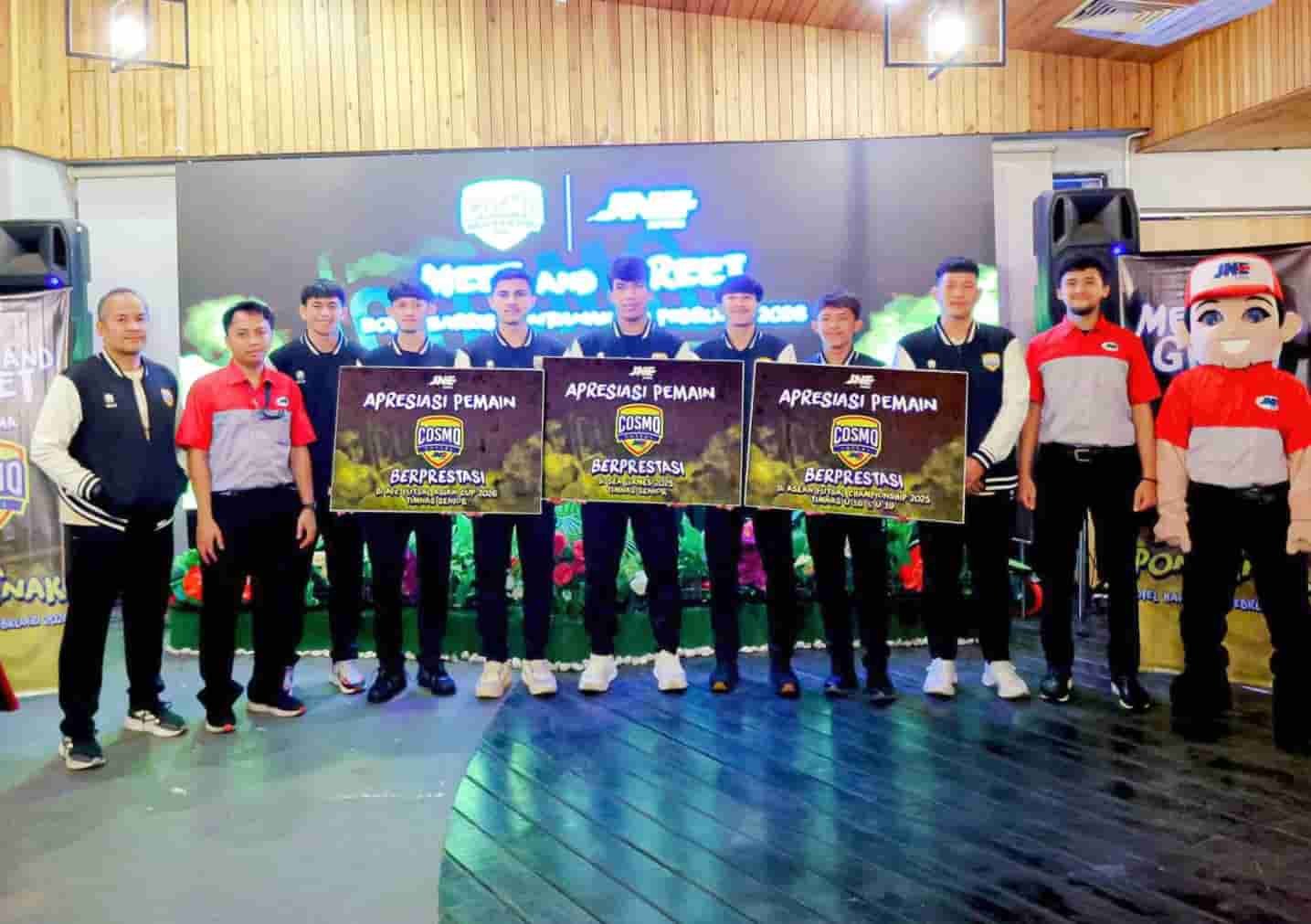 METROKREASI.COM, JAKARTA – JNE kembali membuktikan komitmennya dalam memberikan manfaat seluas-luasnya bagi masyarakat melalui dukungan nyata di bidang olahraga. Sebagai sponsor utama, JNE memberikan apresiasi berupa bonus uang tunai senilai puluhan juta rupiah kepada para pemain dan official Cosmo JNE FC yang berprestasi.