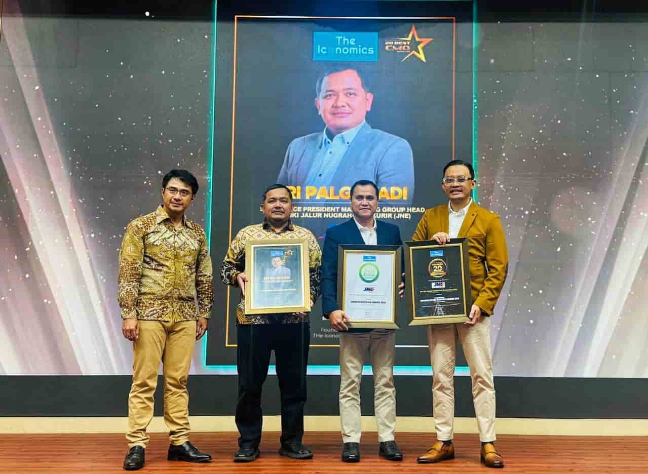 Dalam kesempatan ini, JNE menerima penghargaan Indonesia Best Halal Awards 2026 dan Indonesia 20 Best Companies Awards untuk kategori Courier Service, serta penghargaan individu 20 Best CMO Awards 2026 yang dianugerahkan kepada Eri Palgunadi selaku Marketing Group Head JNE.