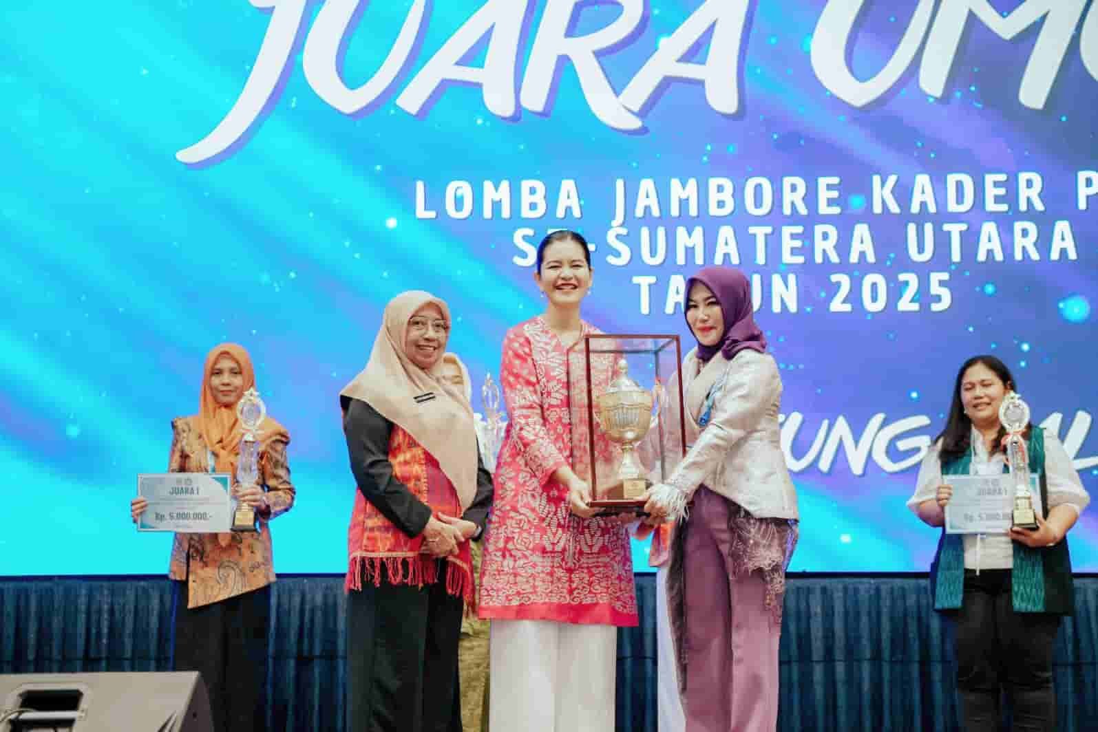 Pada kesempatan tersebut, Kota Tanjungbalai berhasil meraih Juara Umum Jambore Kader PKK Sumut 2025. Piala bergilir diserahkan langsung oleh Kahiyang Ayu kepada Ketua TP PKK Kota Tanjungbalai, Mashandayani Mahyaruddin Salim.