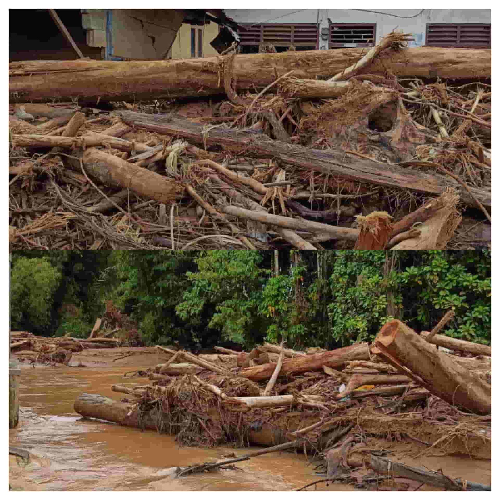 Salah satu bahaya terbesar dari operasi kehutanan di daerah rawan bencana adalah manajemen residu penebangan (slash management). Berkaca dari kasus jembatan yang hancur di Batang Toru akibat hantaman kayu, operasi GRUTI menyimpan potensi bahaya serupa. Jika GRUTI melakukan penebangan dan menumpukan kayu (logpile) di dekat alur sungai atau cekungan lembah, tumpukan ini akan menjadi amunisi mematikan saat hujan ekstrem berikutnya terjadi.