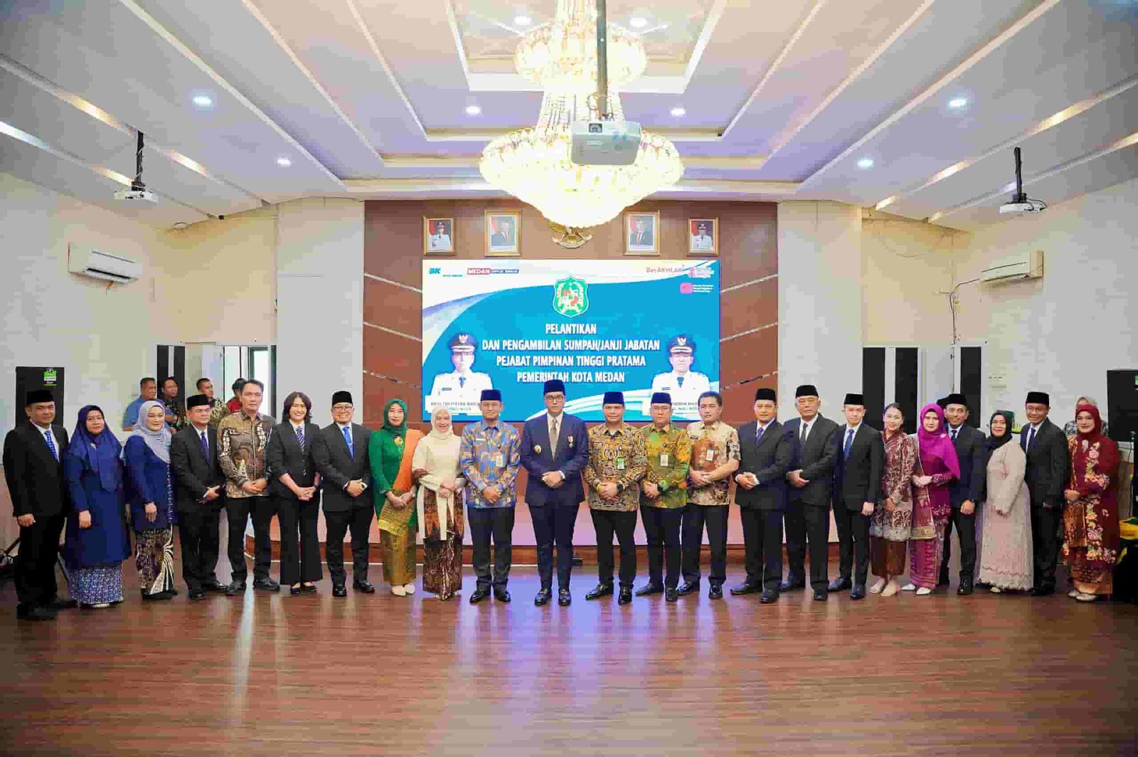Medan, Metrokreasi.com – Wali Kota Medan Rico Tri Putra Bayu Waas melantik dan mengambil sumpah janji jabatan sebanyak 9 orang Pejabat Pimpinan Tinggi Pratama di lingkungan Pemko Medan, Kamis (21/8/2025). Dalam pelantikan yang dilaksanakan di Ruang Rapat III Balai Kota, orang nomor satu di Pemko Medan ini menegaskan, jabatan yang diamanahkan bukan sekadar kebahagiaan, tapi tentang tanggung jawab.