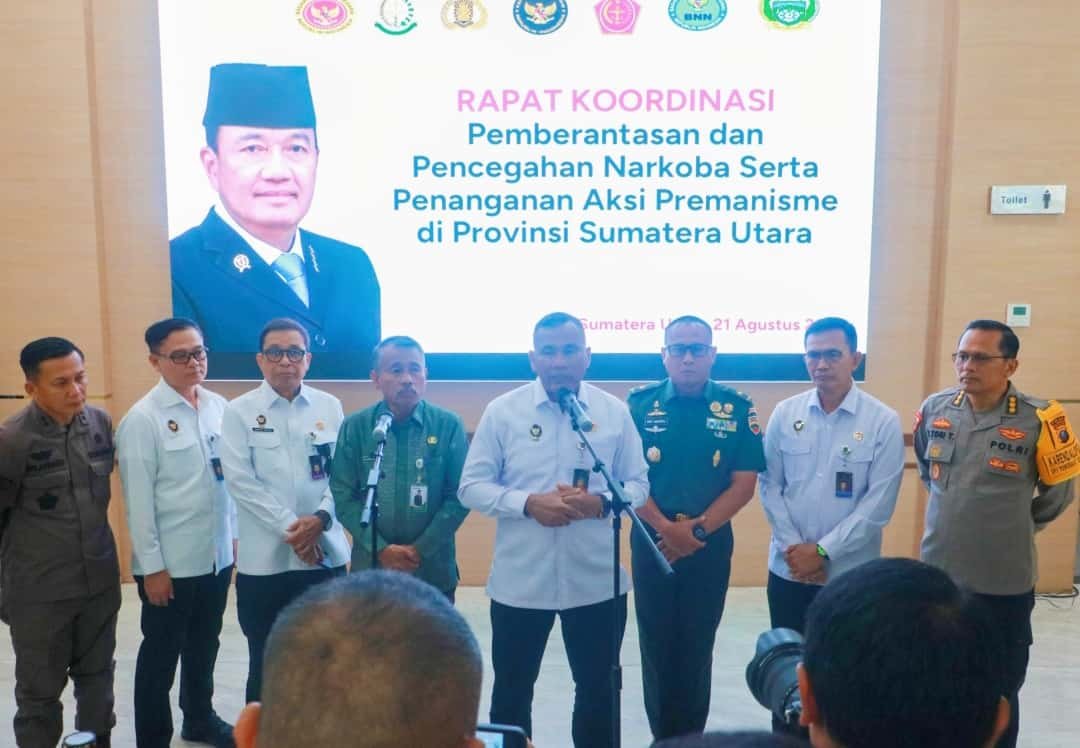 Hal itu disampaikannya usai Rapat Koordinasi Pemberantasan Narkoba dan Penanganan Premanisme yang digelar Kemenko Polkam bersama BIN, Kejatisu, Kepolisian, TNI, BNN, dan Pemprov Sumut di Aula Raja Inal Siregar, Kantor Gubernur Sumut, Kamis (21/8/2025).
