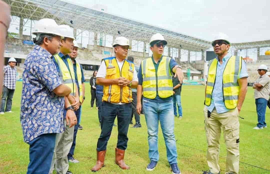 dan meninjau langsung kondisi lapangan serta fasilitas penunjang yang ditargetkan bertaraf internasional. Dari hasil peninjauan, Rico Waas menyebut struktur utama bangunan pada dasarnya telah selesai dan kini tinggal tahap penyempurnaan.
