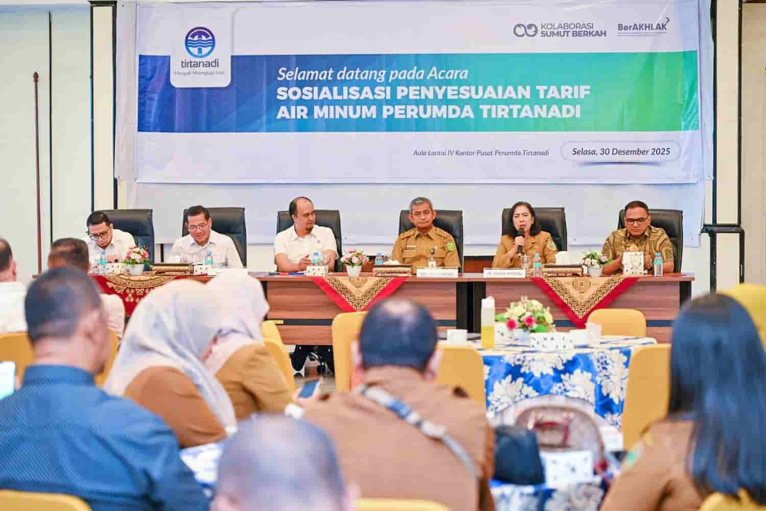 MEDAN, Metrokreasi.com – Perusahaan Umum Daerah (Perumda) Tirtanadi Provinsi Sumatera Utara (Sumut) melakukan sosialisasi perubahan/penyesuaian tarif air bersih kepada masyarakat di Kantor Pusat Perumda Tirtanadi, Jalan Sisingamangaraja No 1 Medan, Selasa (30/12/2025). Bagi masyarakat berpenghasilan rendah (MBR) ada penurunan harga dari tarif sebelumnya.